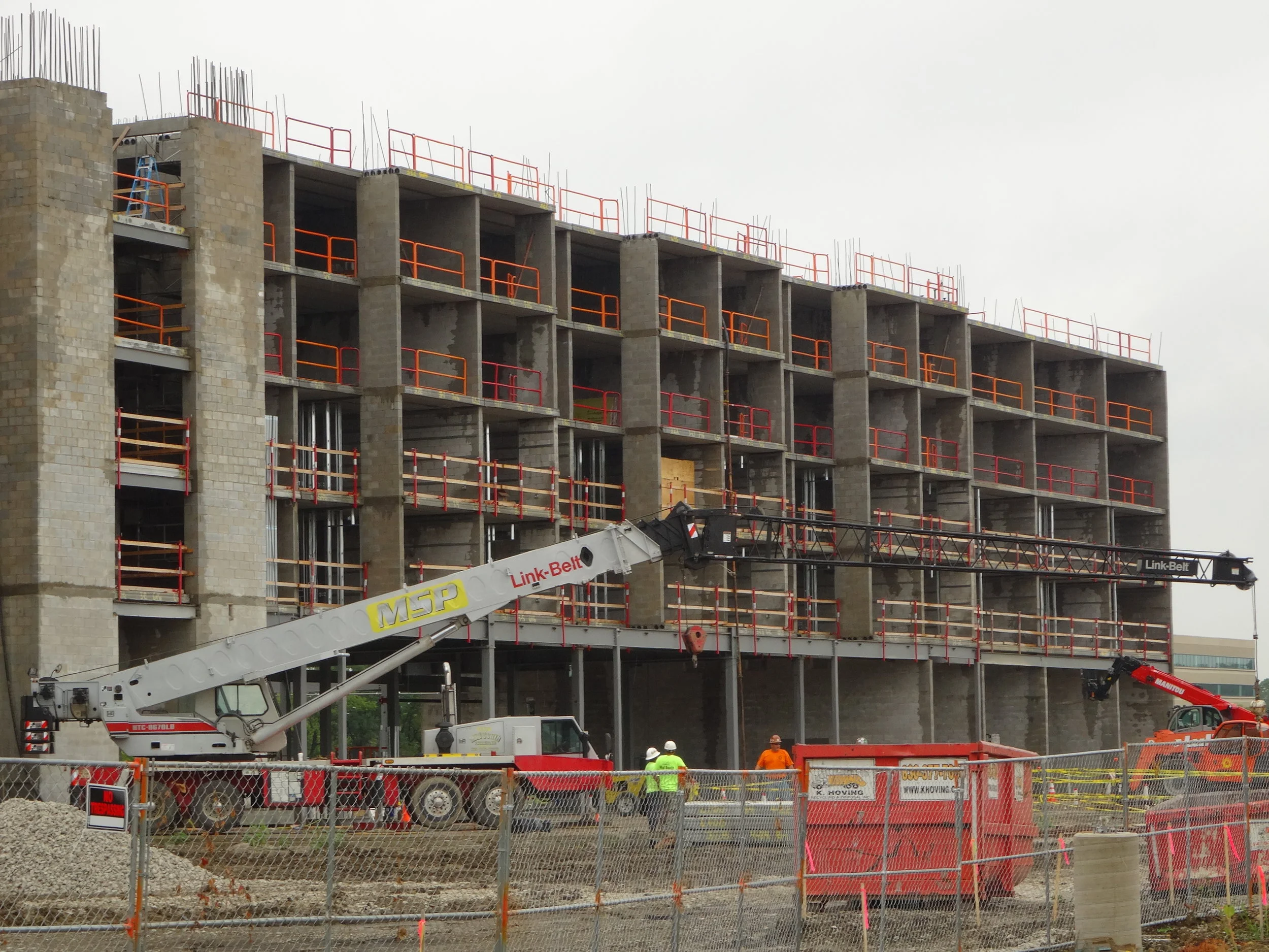 A job with no budget for a SwitchRail system went forward using a 2x4 stick-built rail. As they progressed up 2 floors, they realized having to install the 2x4 to work on the deck, removing the 2x4 to fly the tables, and put back the 2x4 upon completion, it was going to be very costly and take a great deal of time longer per floor.